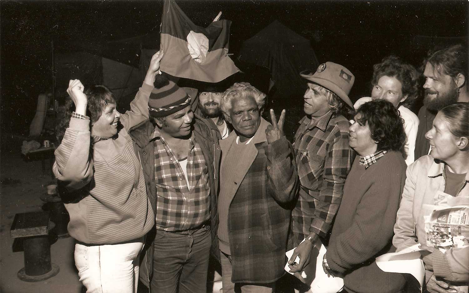 Made by Robert Bropho, Martha Ansara and other protesters working with representatives of Trade Unions and Churches